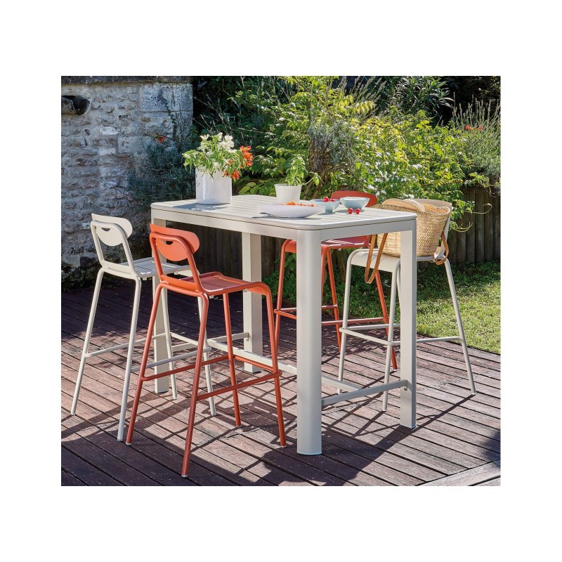 La chaise haute Smiley séduit par ses lignes épurées mêlant style rétro et contemporain. Sa structure en aluminium avec finition époxy lui assure légèreté et résistance pour un usage durable.