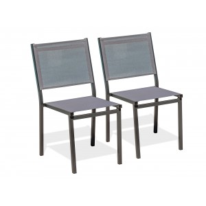 Les chaises de jardin TOLEDE en aluminium gris anthracite et textilène gris sont empilables. Le dossier est équipé d'une barre à l'arrière pour déplacer facilement la chaise.Lot composé de : 2 chaises TOLEDE