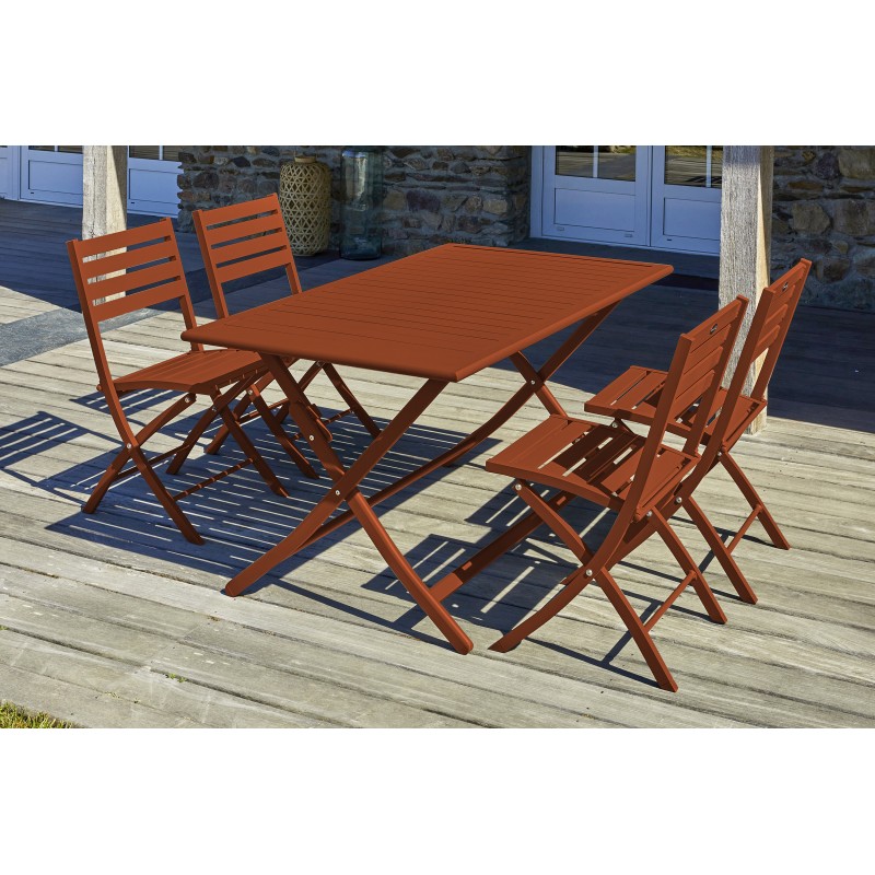 La table de jardin MARIUS est compacte et légère grâce à sa structure en aluminium. Rectangulaire et pliante, elle est pensée tout particulièrement pour l’aménagement des petits espaces. La table de jardin MARIUS prend place avec style et raffinement sur les balcons et les terrasses citadines.Légère et totalement nomade, la chaise de jardin MARIUS en aluminium se plie et se déplie en toute simplicité. Elle est proposée dans une palette de coloris classiques, naturels et intenses pour s’adapter à toutes les envies.