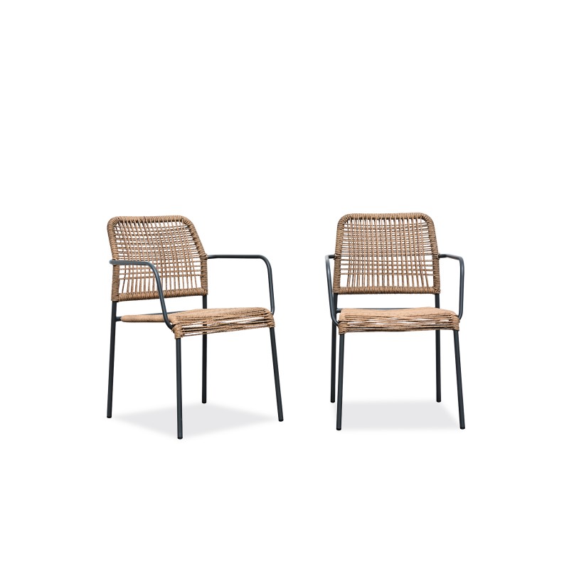 Le fauteuil MARCEAU fusionne une structure solide en acier à une assise et un dossier en corde. Les accoudoirs aux lignes courbes lui confèrent un confort et une commodité supplémentaires.Lot composé de : 2 fauteuils MARCEAU