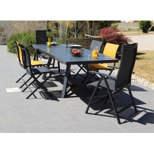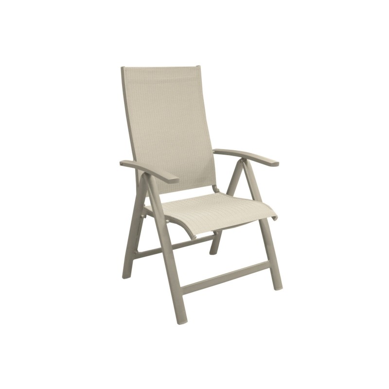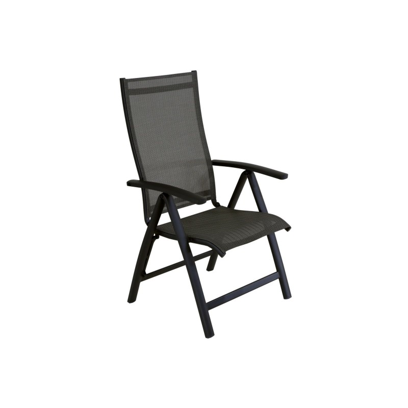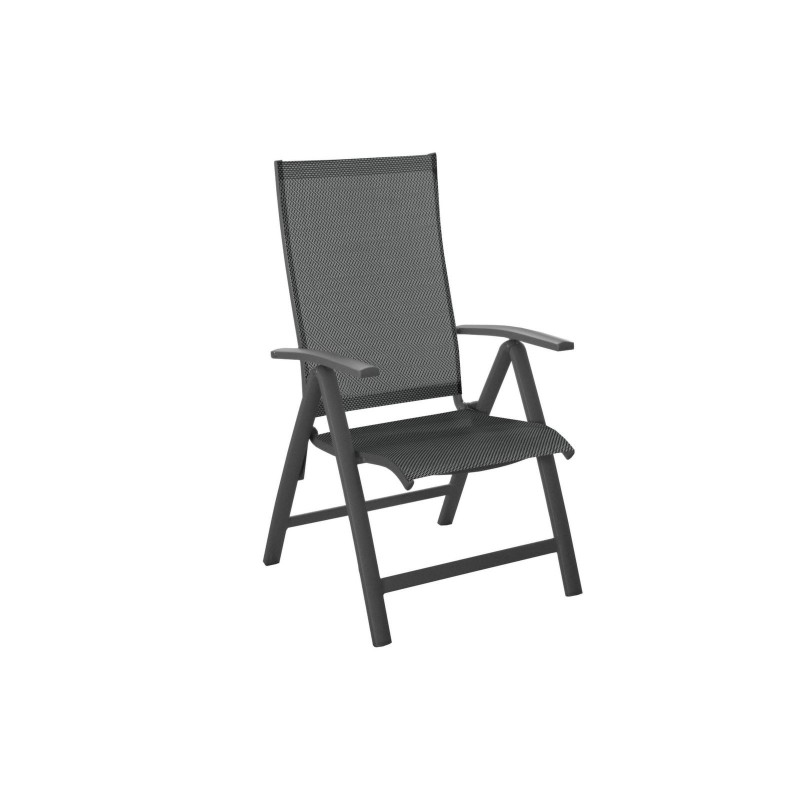 Le fauteuil Élégance multi-positions est conçu pour offrir un confort optimal grâce à son dossier haut inclinable et son assise en toile TPEP. Réglable en 5 positions via les accoudoirs, il s’adapte à toutes vos envies, du repas à la détente.