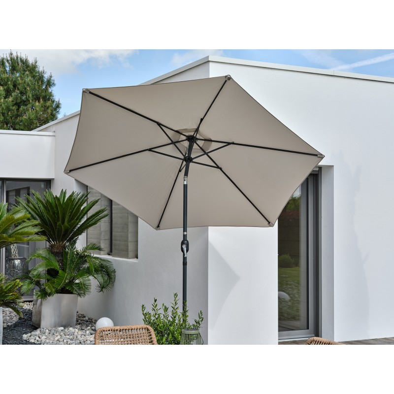 Le MARBELLA est un parasol à toile ronde de 6 m². Structure en aluminium et toile en polyester. Parasol inclinable et muni d'une manivelle pour plus de praticité.Pied de parasol vendu séparément