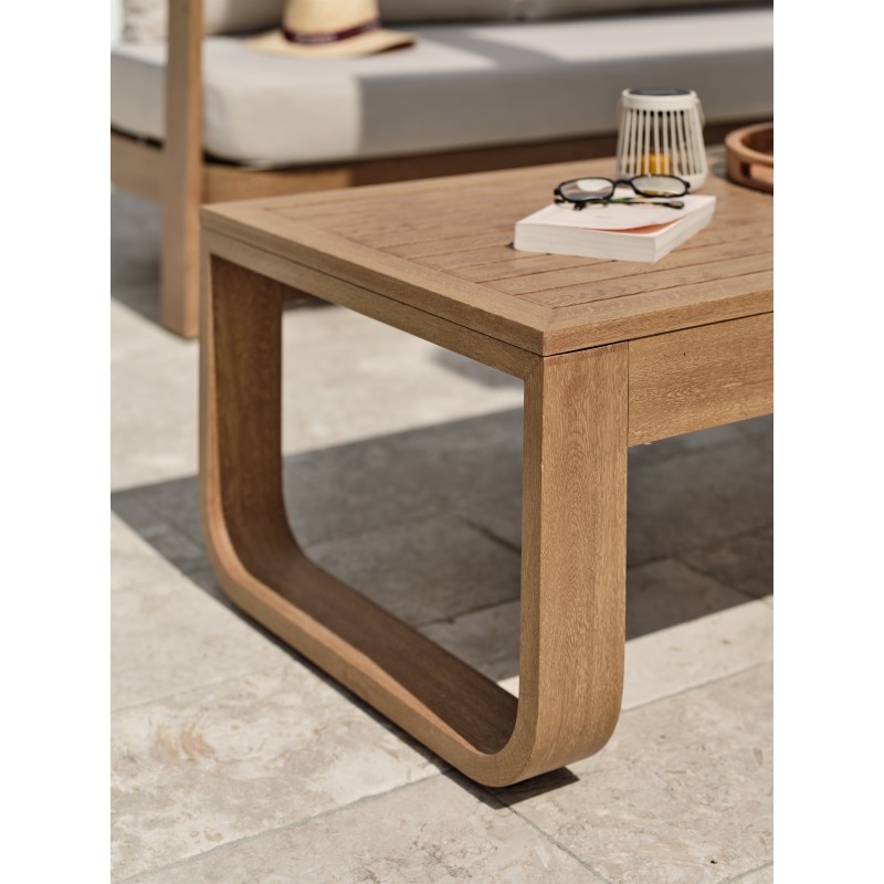 Le salon de jardin DAVAO en aluminium aspect bois allie à la perfection un style moderne et des contours adoucis.Ses confortables coussins beiges apportent une touche d'élégance et de raffinement toute particulière.