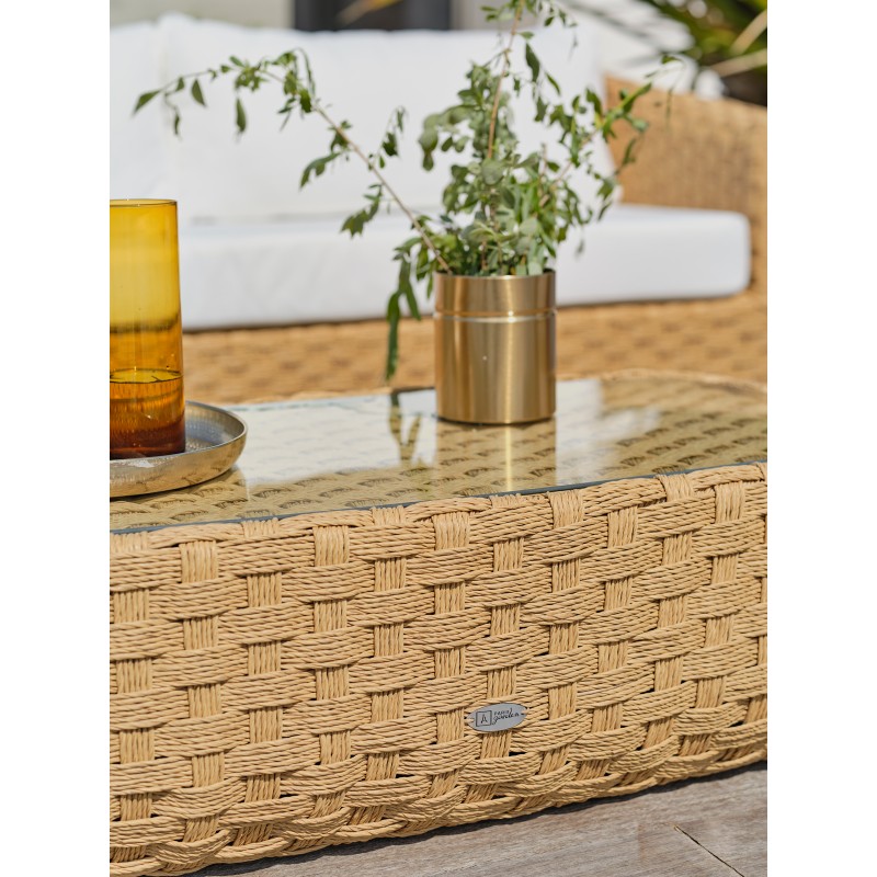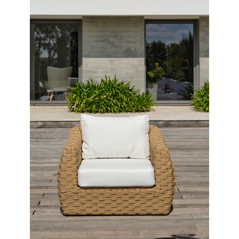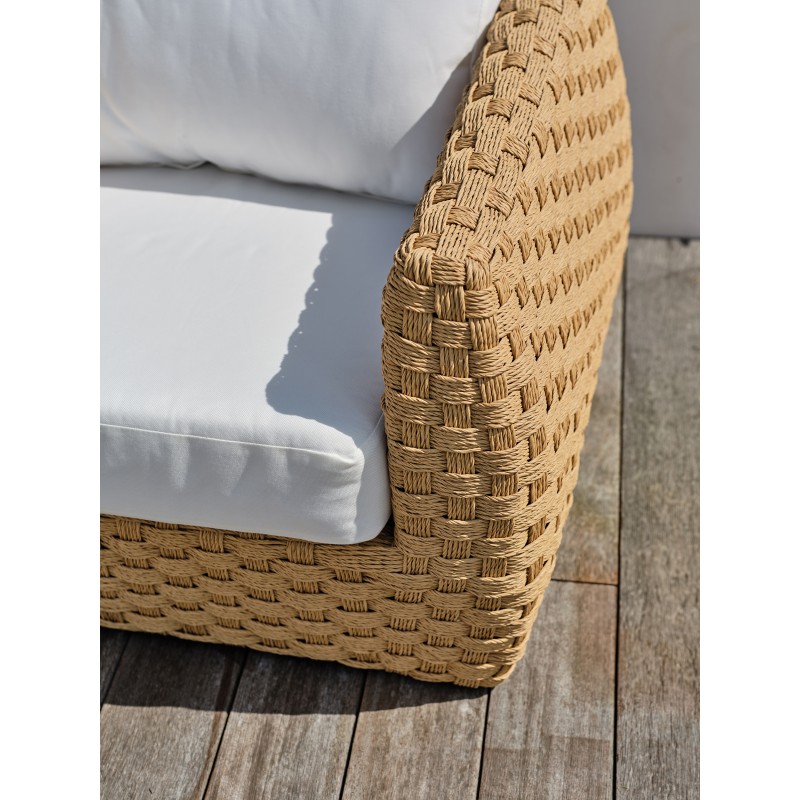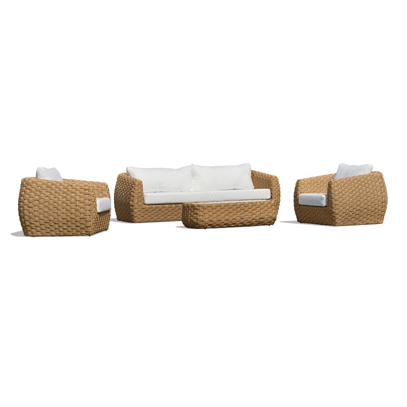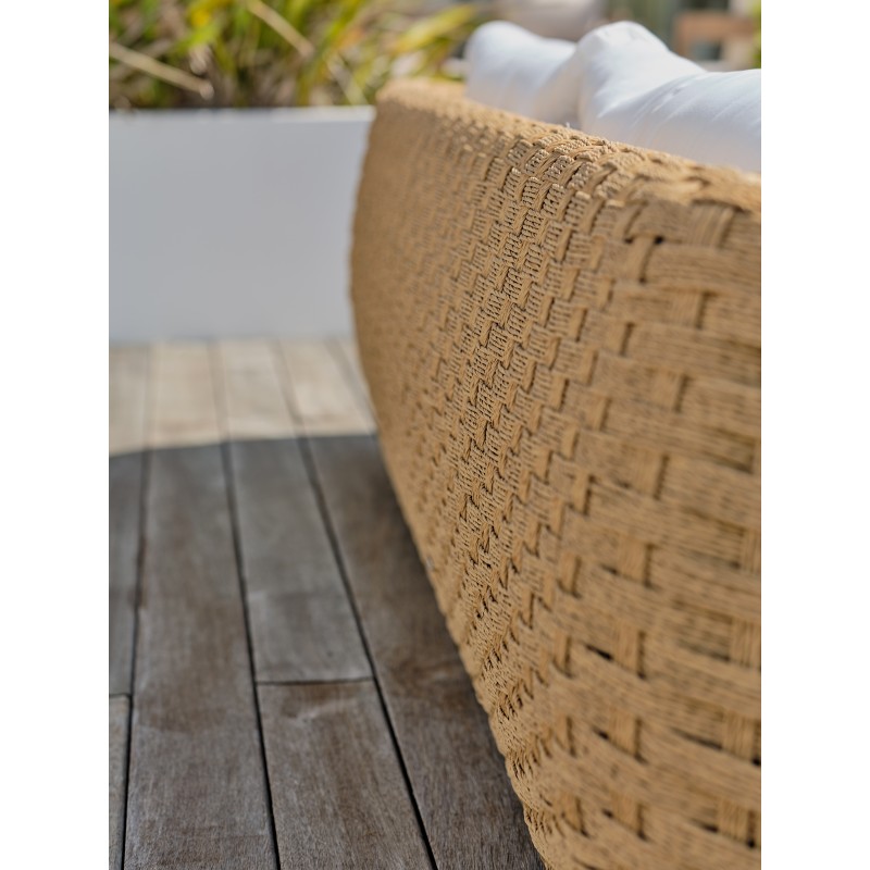 Avec ses dimensions généreuses et ses formes arrondies, le salon de jardin RAMATUELLE en résine tressée est parfait pour donner un air particulièrement élégant aux extérieurs qu’il habille avec raffinement.Ensemble composé de : une table basse, 1 canapé 3 places, 2 fauteuils, 3 coussins d'assise et 4 coussins de dossier.