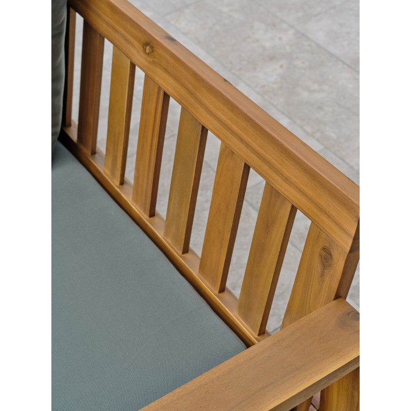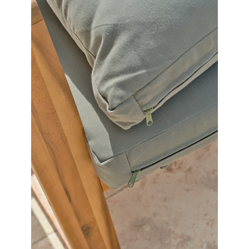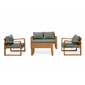 Le salon de jardin 4 places ARACAJU certifié FSC® 100% en bois d'acacia est un choix parfait pour un moment de détente dans le jardin. Il offre une expérience d'assise confortable et attrayante avec ses épais coussins coloris vert olive.Ensemble composé de : une table basse, un canapé 2 places, 2 fauteuils, 3 coussins d'assise et 4 coussins de dossier.