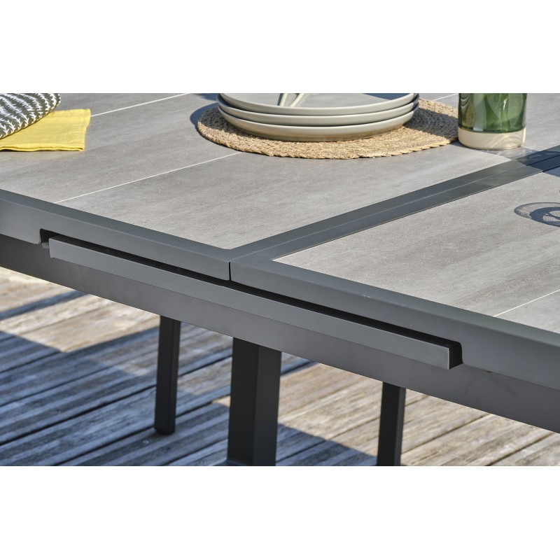 Les imposants et élégants pieds en U viennent confirmer le look intemporel de la table de jardin OLHOS.