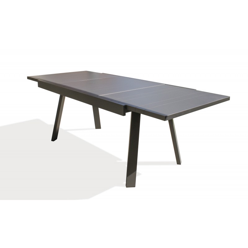 Robuste et originale, la structure en aluminium de la table de jardin STOCKHOLM est composée d’un plateau aluminium agrémenté de fines striures. La rallonge intégrée permet de passer de 6 à 8 convives.
