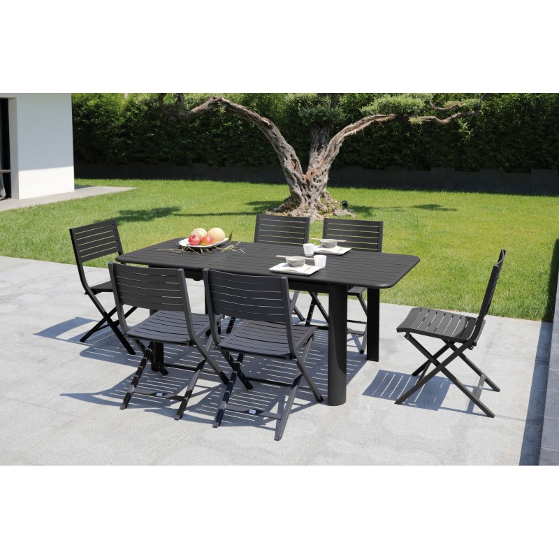 Conçue en aluminium avec finition époxy, elle offre légèreté et résistance, même en extérieur ou en bord de mer. Son piétement réglable garantit une excellente stabilité sur tous types de sols.