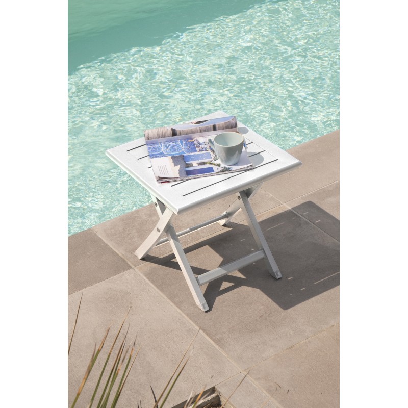 Véritable table d'appoint de jardin pliante, la MARIUS-TB40 en aluminium se décline en différent coloris.